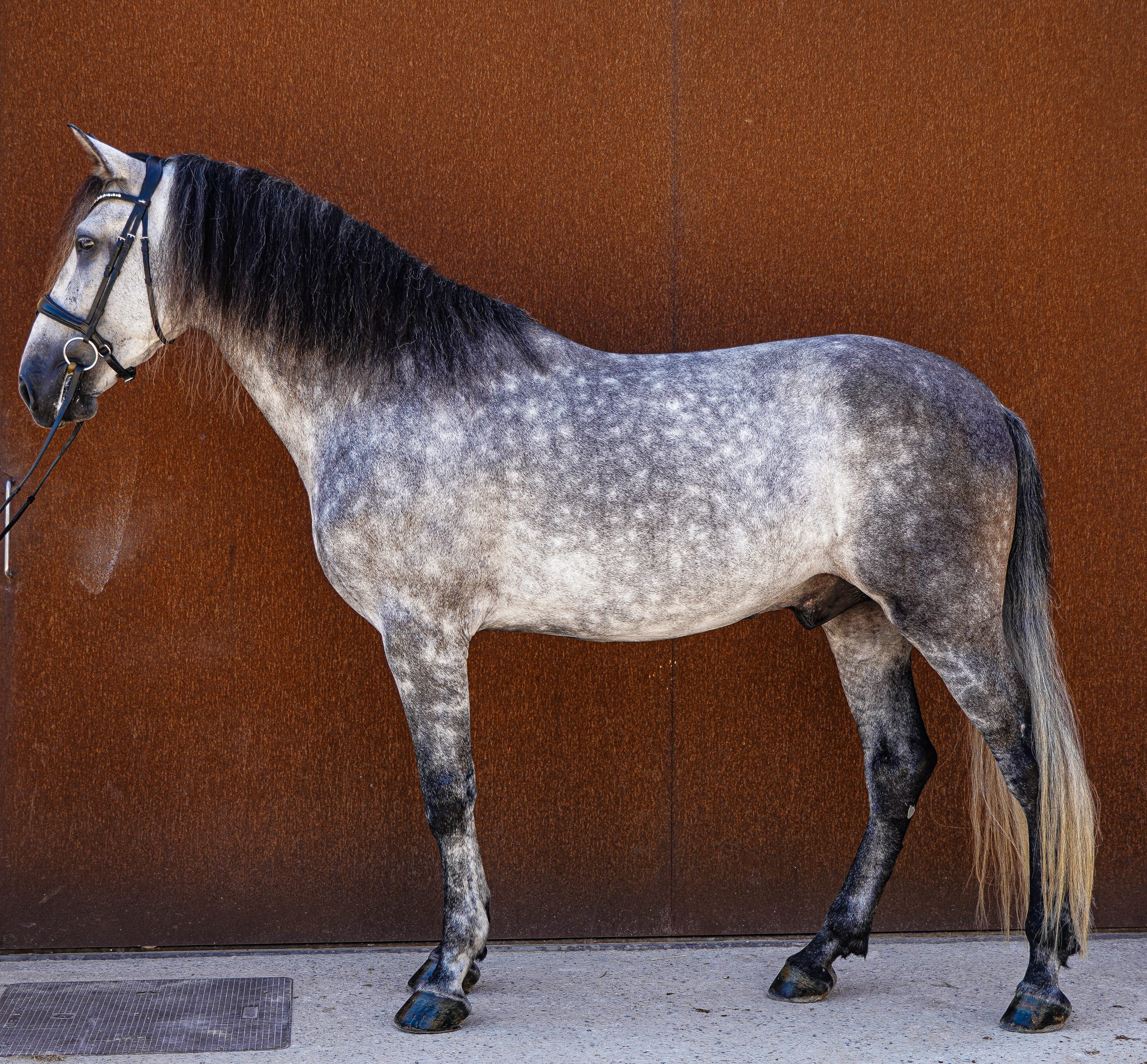 Su padre Fer Rey, hijo del semental Calificado Mañoso II, transmite su manejabilidad y amor al trabajo a toda su descendencia. Somos de la opinión de que tenemos una joya aquí. Algún día traerá mucha alegría a su futuro propietario. A la edad de 4,5 años ya ha alcanzado la altura de 1,72. Una vez que este hermoso caballo haya crecido completamente, se verá impresionante.